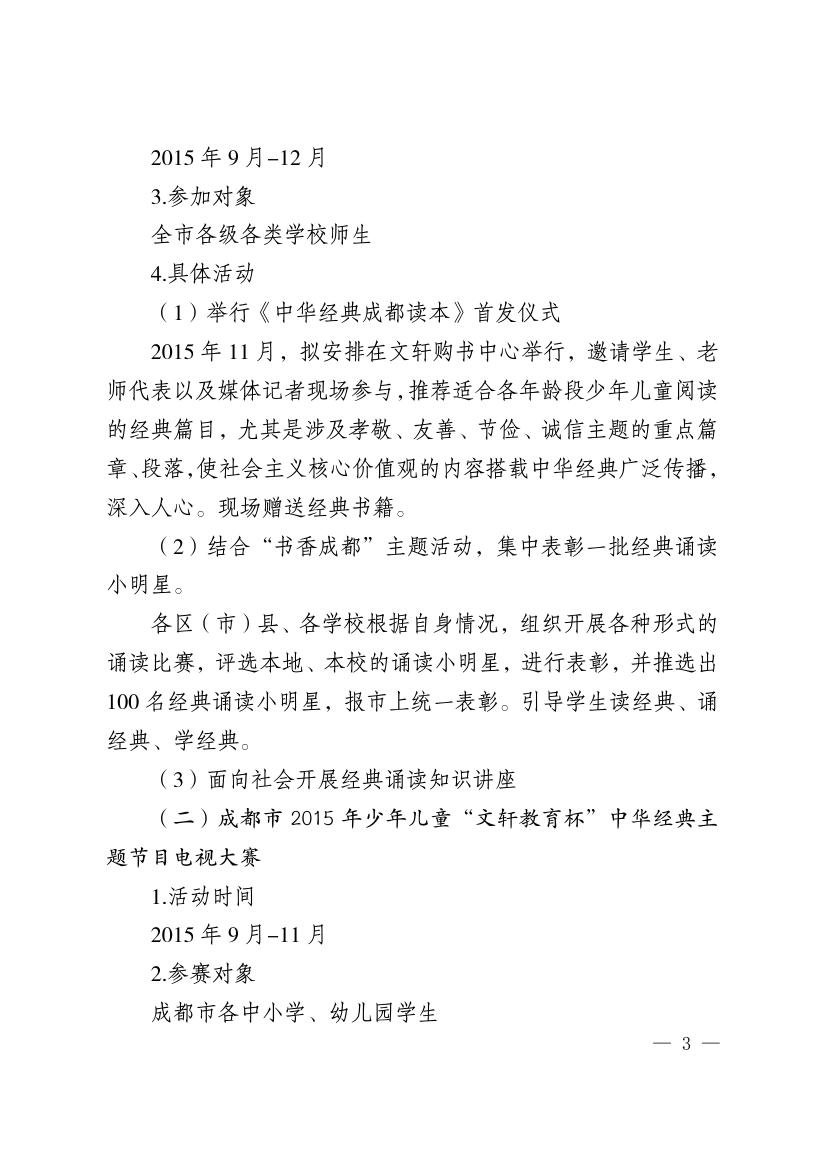 开展成都市2015年少年儿童经典学习展示系列活动