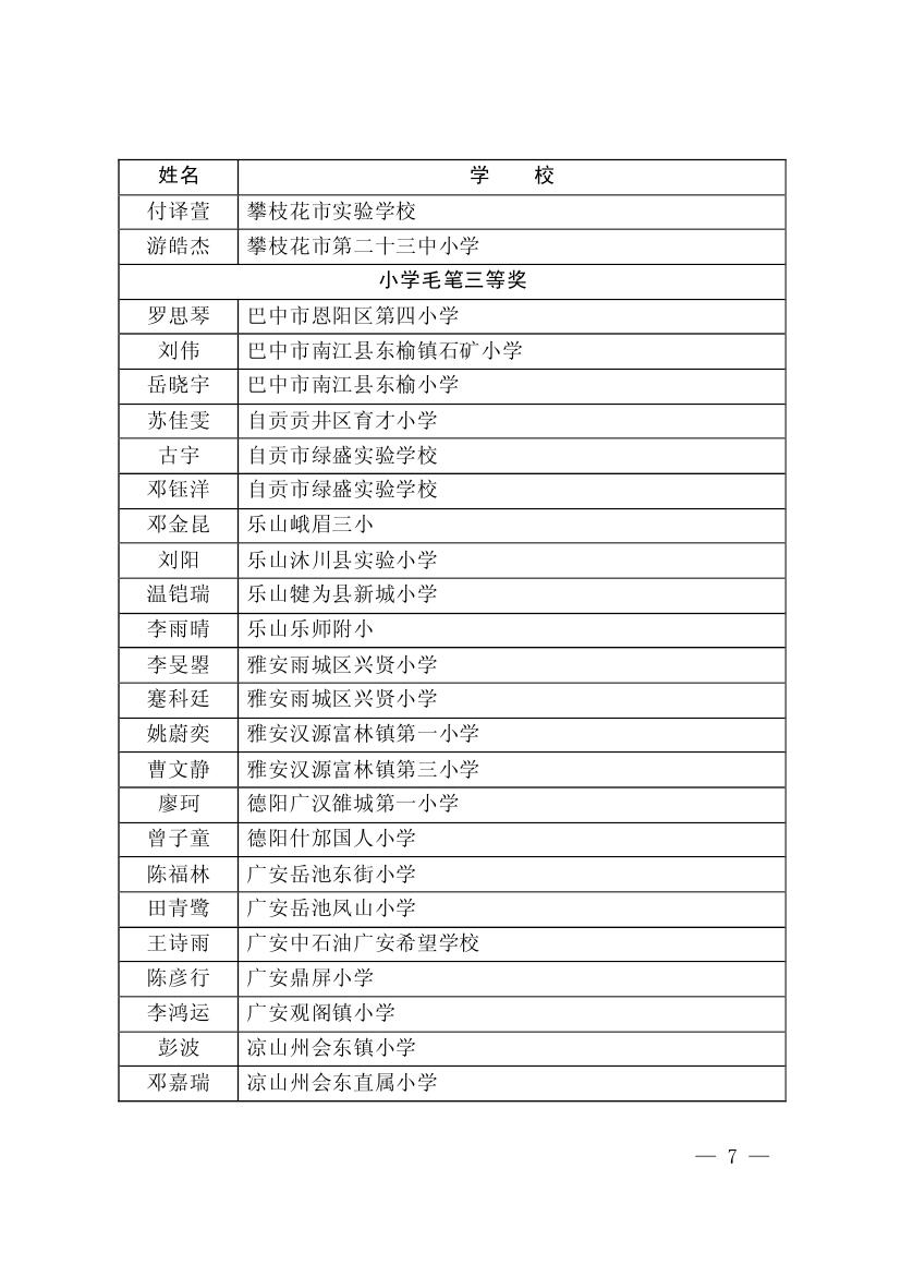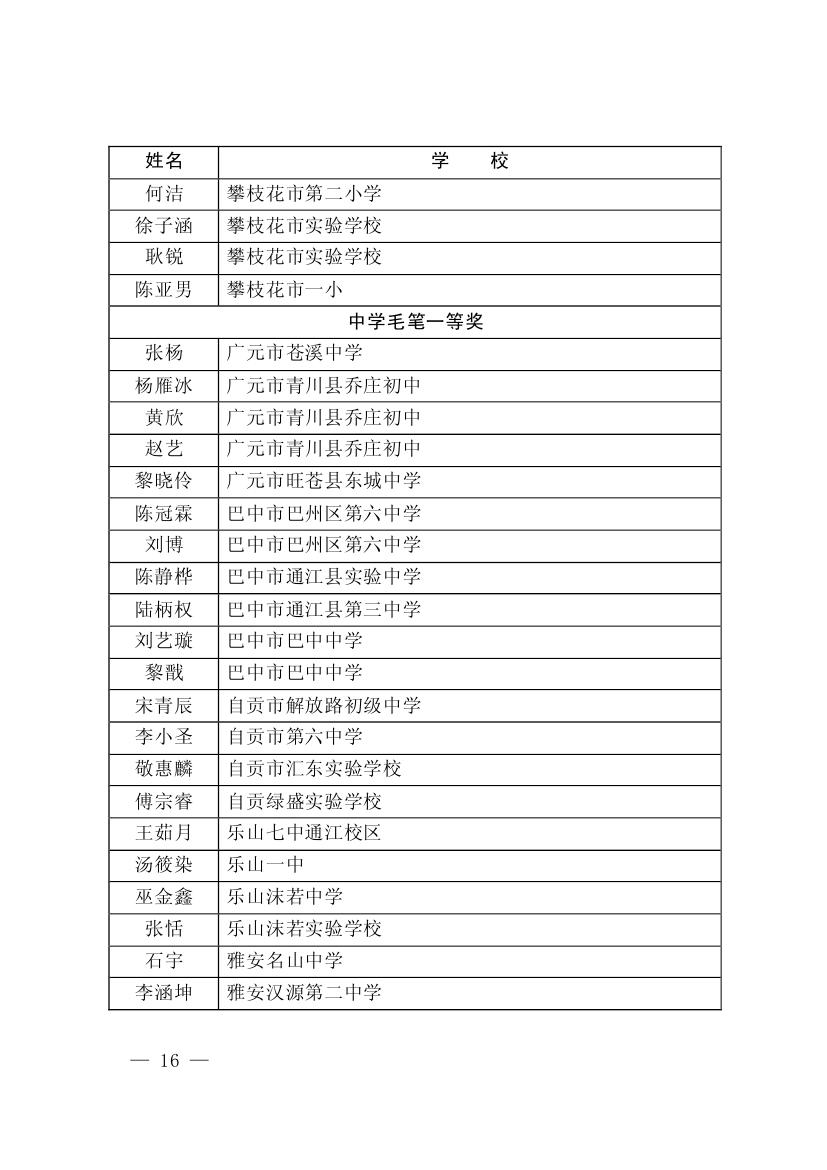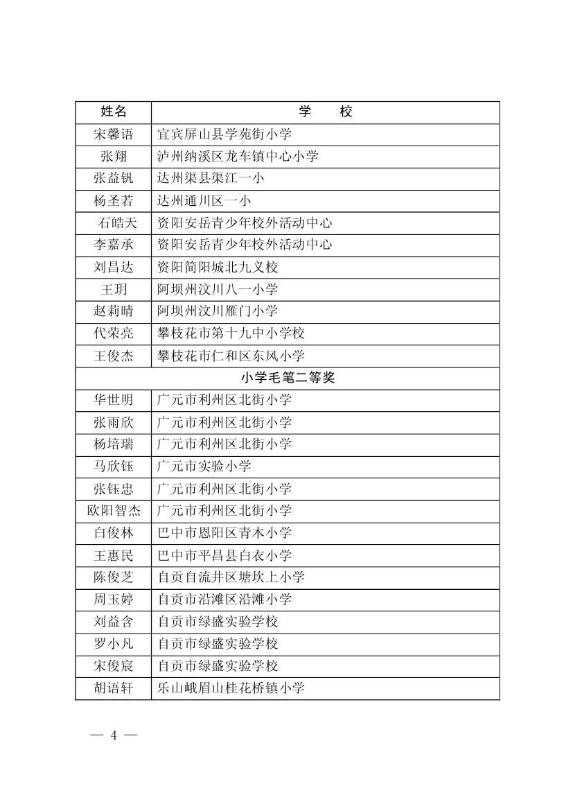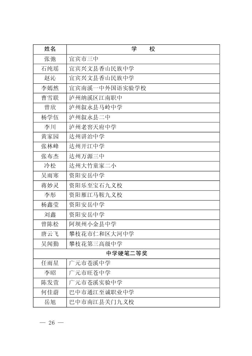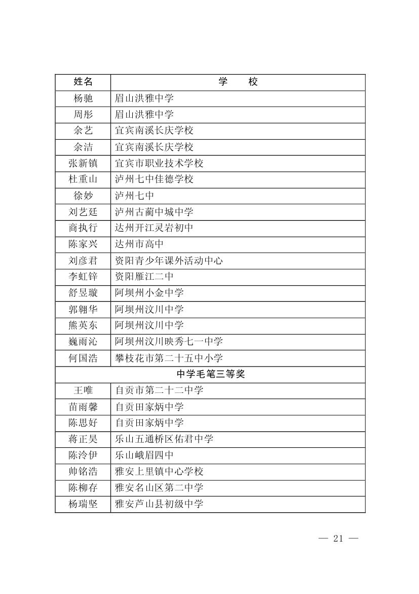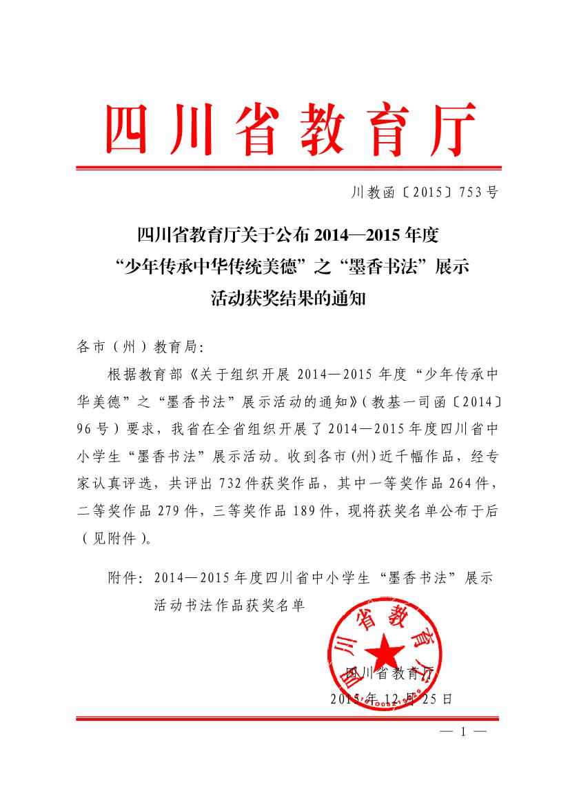 四川省墨香书法展示获奖名单