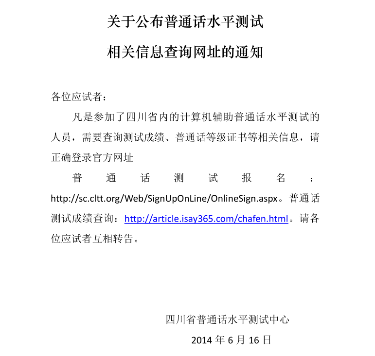普通话水平测试相关信息查询的通知