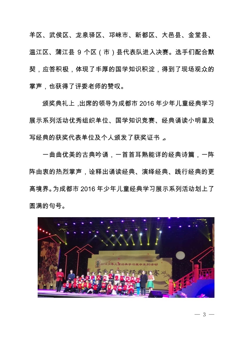 成都市2016年少年儿童经典学习展示系列活动颁奖