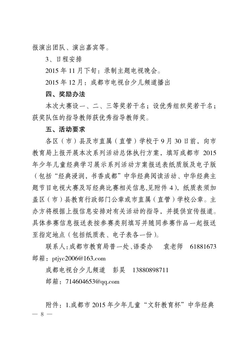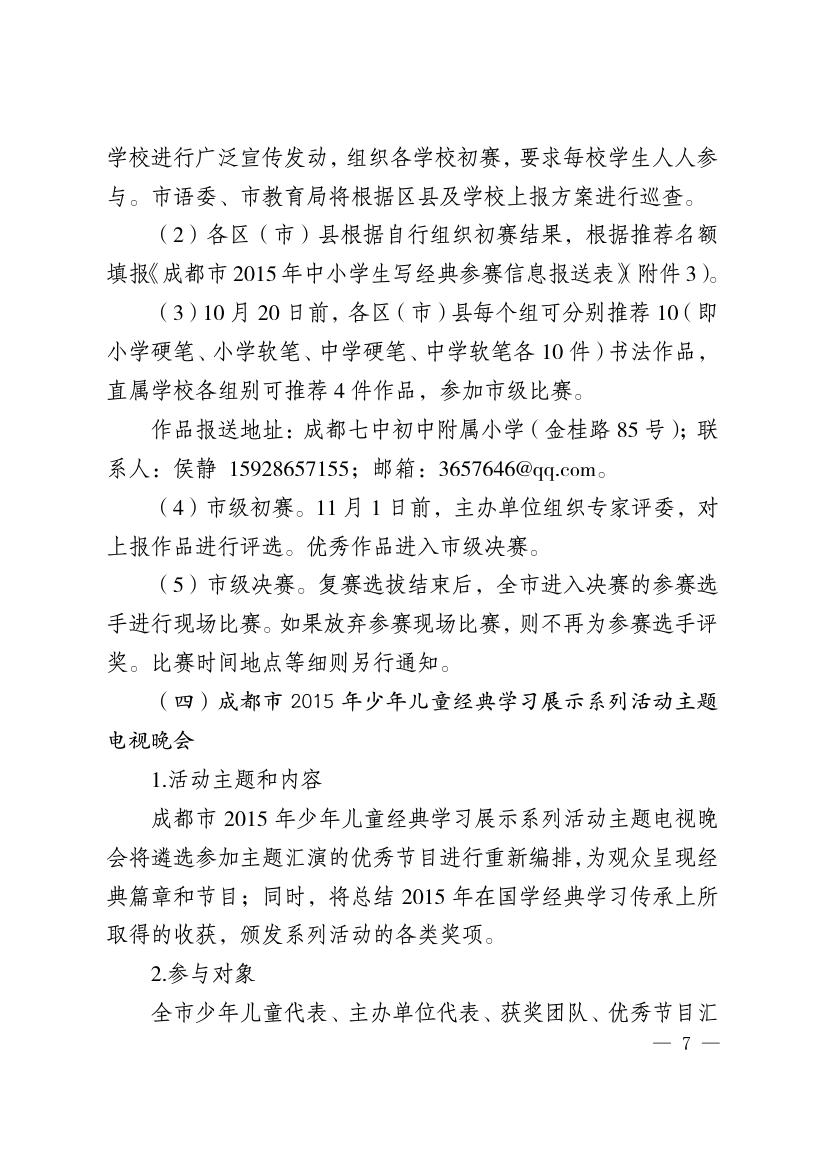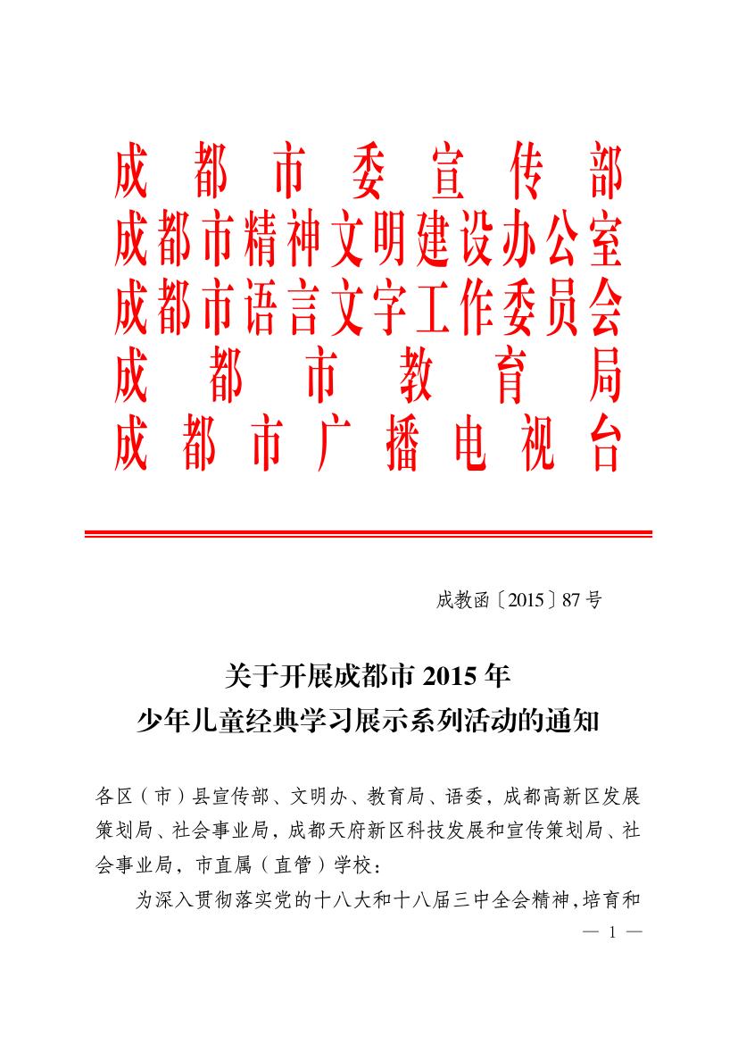 开展成都市2015年少年儿童经典学习展示系列活动