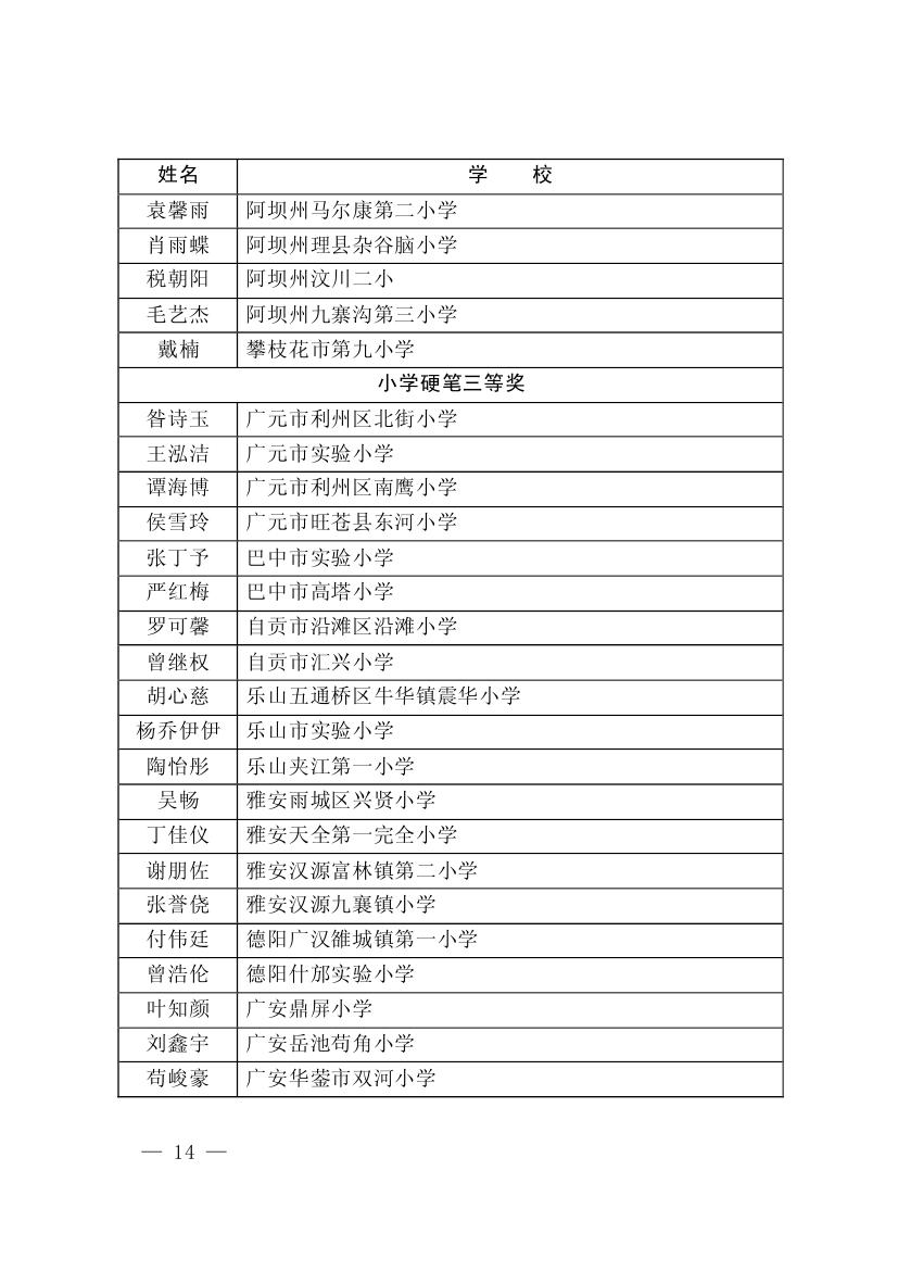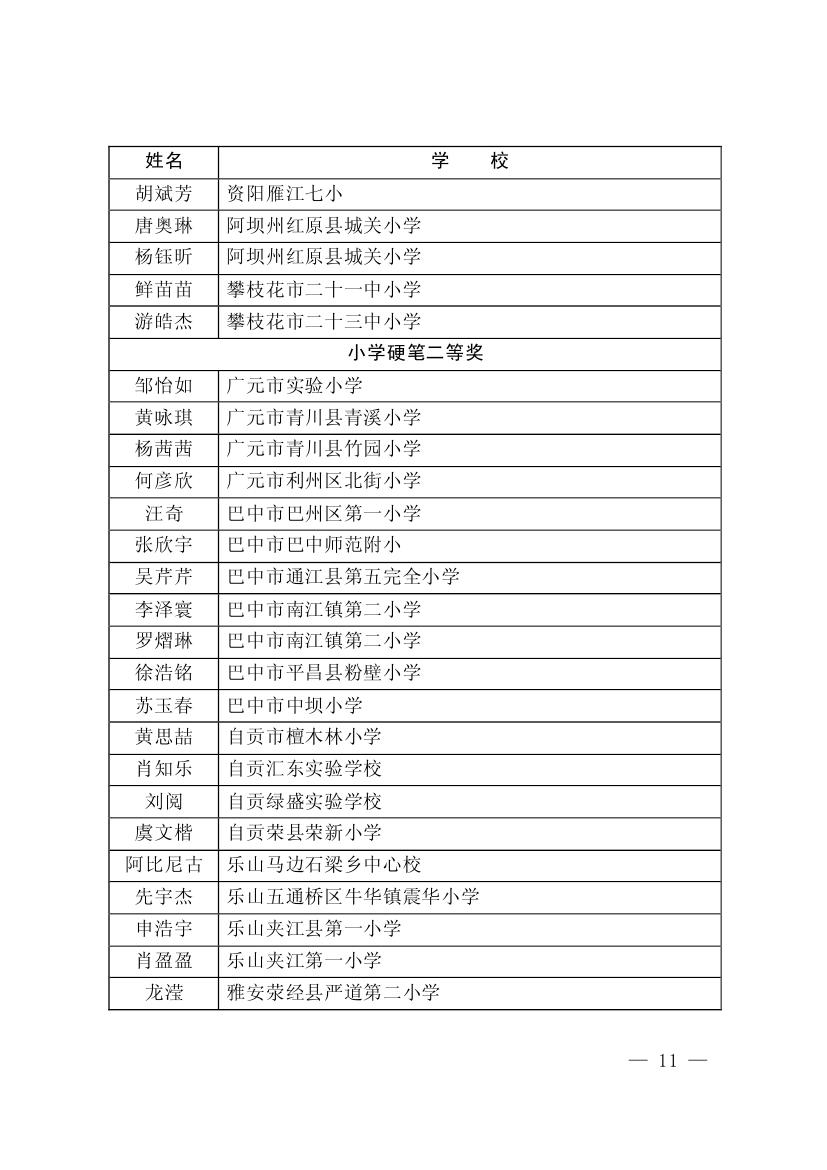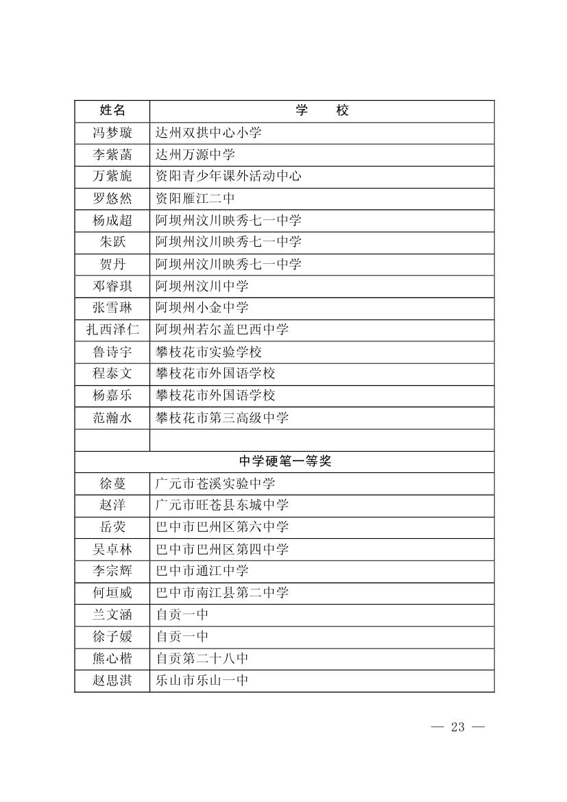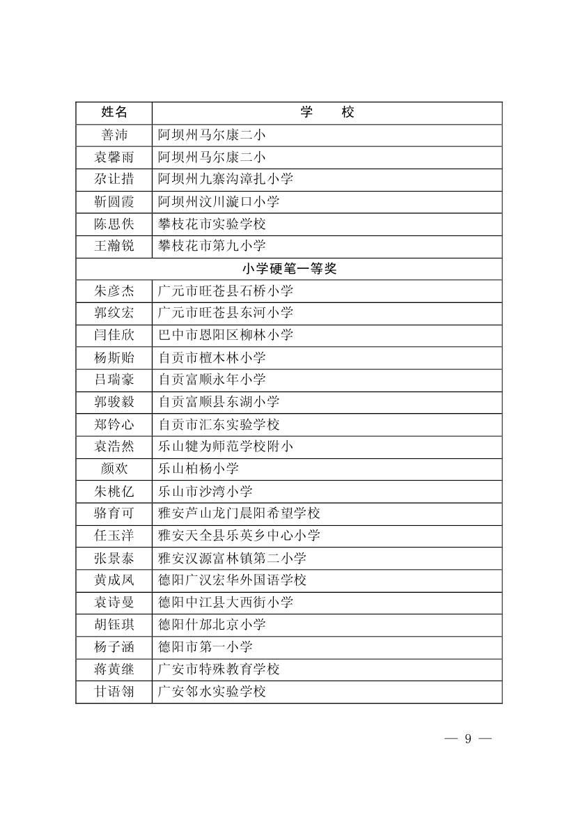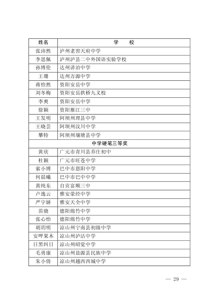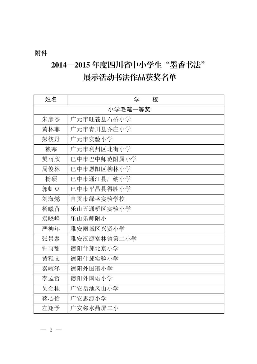 四川省墨香书法展示获奖名单